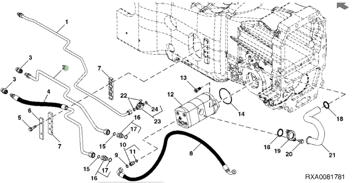 Przewód olejowy RE243538 do ciągników marki John Deere