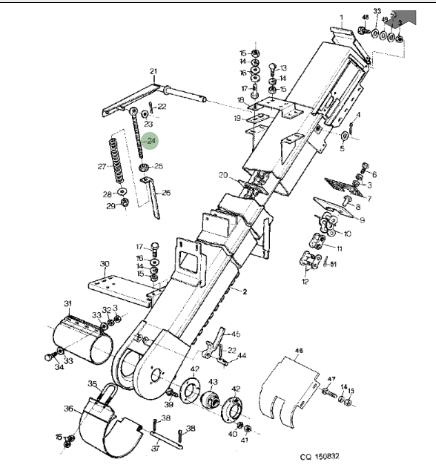 Śruba CQ05354 napinacza łańcucha podajnika pochyłego stosowana w kombajnach John Deere